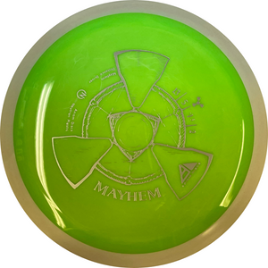Mayhem has a responsive straight-stable profile and plenty of speed, making it a perfect workhorse driver for many advanced and expert throwers. Like the MVP 23mm class, the Mayhem has a pronounced dome to promote distance-covering glide. Mayhem is best compared to a beat MVP Octane.