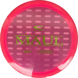The Maul is a fairway driver made for turnover shots. It resembles our popular River, in both speed and glide but is more understable. This disc is a very good choice for beginners and amateurs, since it is easy to grip and control, and won’t fade as much as high speed drivers.